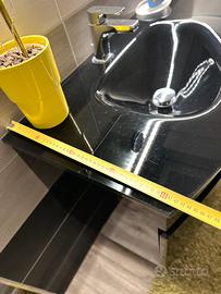 Top e Lavabo: Piano superiore in materiale tecnico nero lucido con lavabo integrato a scivolo. La superficie è continua, facilitando la pulizia e garantendo un'estetica minimale