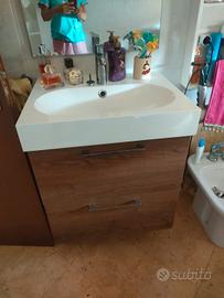 vendo mobile bagno ikea sospeso colore marrone.isura 61 larghezza 49 profondità e 68 altezza. con due cassettoni molto capienti. relativo specchio e rubinetto