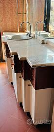 Mobile bagno di pregio in legno e ripiano in marmo rosa del portogallo
