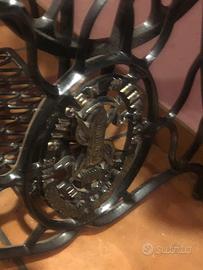 Mobile bagno con piano effetto marmo cm.160x50 su cui sono presenti 2 lavabi dal diametro di cm. 40 alti cm.15 2 pilette clic clac in acciaio. (Inscatolati) il piano è in appoggio su una base singer d’epoca restaurata. Disponibili 2 rubinetti sempre nuovi a parte al prezzo di 50,00€ cadauno