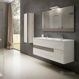 Mobile bagno sospeso doppia vasca da 120cm con due cassetti, composto da, mobile,lavello,specchio,colonna, applique Led.