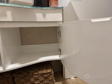 Mobile bianco curvo con piano e lavabo in vetro Due sportelli Tubo (No miscelatore) Misure: H 50cm - Prof da 30 a 50 cm - L 100 cm