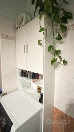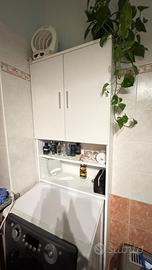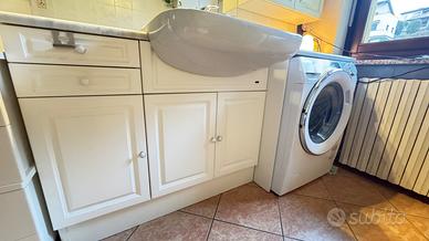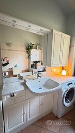 Vendo mobile bagno con specchio 95cm, mobiletto 60cm, Lavabo con rubinetto, Piano in marmo, due cassetti e ante sotto lavabo, spazio per lavatrice (non compresa), mobile asciugatrice. La struttura è già smontata pronta da ritirare, Ritiro a carico dell’acquirente.