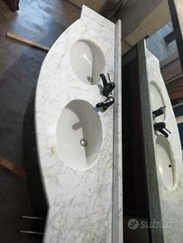 Mobile bagno doppio lavabo e specchiera nero laccato. Top in marmo spesso 3 cm, 2 porta tovaglie integrati, rubinetteria, ampia specchiera con mensola, faretti, presa di corrente ed interruttore. Ottima fattura, no mobile economico. Cell. 3383386662