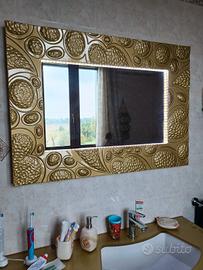 Vendo mobile bagno, colore marrone con ripiano in vetro colore oro, e specchio in coordinato oro con led integrati nei 4 lati.