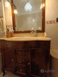 Mobile legno eban cm 90 compreso di specchio, lavabo marmo e rubinetto. Smontaggio è trasporto a carico acquirente.