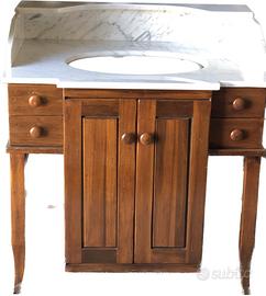 Mobile bagno Euro design in noce nazionale e piano in marmo bianco di Carrara completo di lavabo incassato Ideal standard. Cassettiere interne rifinite in velluto verde. Completo di specchiera a due luci in legno con intarsio in marmo Carrara. Super occasione per liquidazione allestimenti show-room rivendita