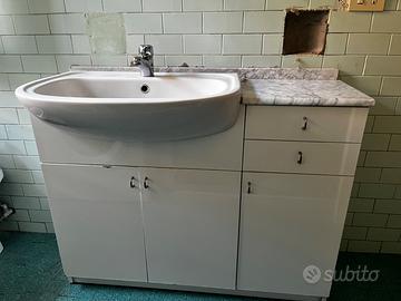 Mobile bagno specchiera con mobiletto annesso largo 1,05 alto 1,02 , base con lavabo largo 107, alto 82 profondità 33 .