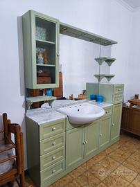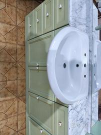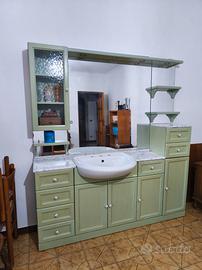 Mobile Bagno con lavabo in ceramica e pianale in marmo marca Legnobagno. Usato ma in buono stato come da foto. Presenta 7 cassetti 4 ante in legno e 1 in vetro ampio specchio con mensole. Solo ritiro in loco.
