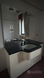 Mobile bagno in marmo nero Ideal Stamdard completo di lavabo a catino e specchio con faretti L 142x P 48