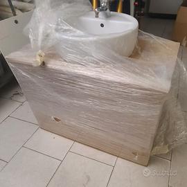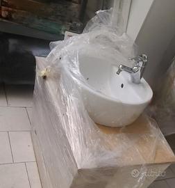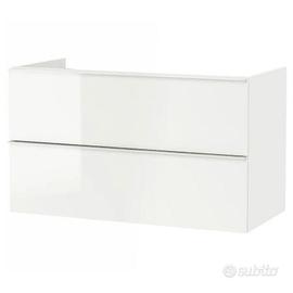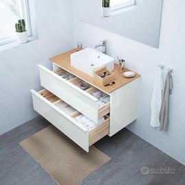 vendo mobile bagno ikea bianco lucido, 2 cassettoni, smontato e imallato. piano in bambù con lavandino in appoggio rotondo bianco e rubinetto cromato.