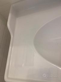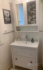 Mobile per lavabo con 2 cassetti, bianco, 80x47x83 cm compreso rubinetto in foto e rubinetto della stessa serie per il bidet + Mobile a specchio con 2 ante, bianco, 83x16x98 cm + lavabo (come da foto con leggera crepa angolo sinistro).