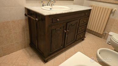 Mobile bagno in arte povera con specchiera piano in marmo molto bello 120x60x80h