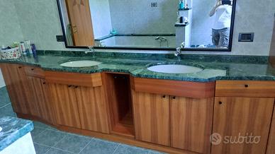 mobile per bagno in legno listellare di ciliegio con piana in marmo doppio lavabo in ceramica, lunghezza: 294 cm + 42 cm tot. 356, profondità: 42 cm fino ad arrivare a 58 cm. In ottime condizioni cambio solo per ristrutturazione prezzo trattabile