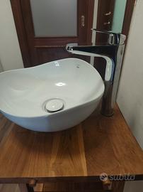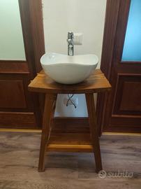 Mobile lavabo console completo in teak legno naturale massello Lavabo marchio Roca Rubinetto Ideal Standard H80 L50 P42