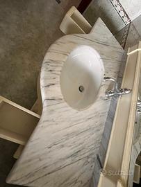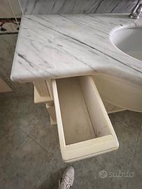 Vendo mobile bagno in legno con piano in marmo bianco di Carrara , completo di lavandino e miscelatore .