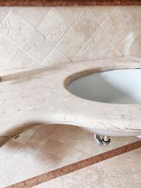 Mobile bagno in marmo perlino rosato. Il mobile è composto da due lavabi completi di rubinetteria e sifoni. Tutti gli elementi sono in ottime condizioni. Dimensioni lunghezza 149,5cm profondità 50cm