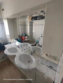 Mobile bagno con doppio lavandino in marmo, mobili laccati bianchi, rubinetti compresi 400€ Cell 333 8355633 Cell 3451290187