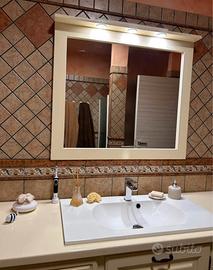 Mobile bagno in rovere massiccio laccato color panna compreso di specchio e lavandino