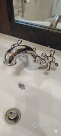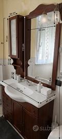 Vendo mobile da bagno in vero legno, recentemente riverniciato per rinfrescarne l'estetica. Si tratta di un pezzo d'arredo solido e di qualità, non paragonabile ai prodotti economici in truciolato. Il set è completo e pronto per l'installazione, comprensivo di tutti gli accessori. Cosa è incluso: Base lavabo: In vero legno con cassettiera e sportelli molto capienti. Specchiera: Grande, con cornice coordinata e vetro in ottime condizioni. Illuminazione: Luci applique integrate e funzionanti. Rubinetteria: Miscelatore incluso. Vetrinetta pensile: Lo sportello è intatto (manca solo la maniglia, sostituibile con qualsiasi modello standard da ferramenta). Dettagli sulle condizioni: Il lavabo in ceramica presenta 2-3 piccole scheggiature superficiali. Sono difetti puramente estetici che non pregiudicano la funzionalità e sono facilmente riparabili con un kit di smalto a freddo per ceramica. Formula: Visto e piaciuto. Ritiro: A carico dell'acquirente.