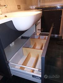 Cassetto sotto il lavandino con divisori in legno, ripiano della parte destra in basso in vetro