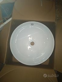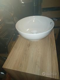 Mobile bagno sospeso completo, mobile,lavello tondo in ceramica, specchio e applique led