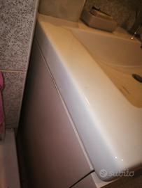 Vendo composizione bagno completa composta da: Mobile sospeso con 2 cassetti capienti Lavabo integrato in ceramica Specchio Pensile laterale coordinato Colore: elegante rosa antico, ideale per dare un tocco caldo e moderno al bagno. Il mobile è in buone condizioni, senza danni strutturali. Normali segni di utilizzo ma nel complesso ben tenuto (vedi foto). Venduto completo come da foto. 📏 (misure visibili come progetto foto) 📍 Ritiro a mono (Trezzano sul naviglio) 🚫 Smontaggio e trasporto a carico dell’acquirente (dal 5 al 10 maggio - visionabile anche prima) 💰 Prezzo 600€