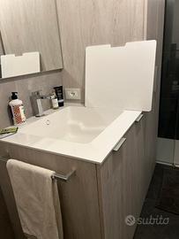 Vendo mobile come nuovo arredi bagno lavanderia come da foto, composto da lavandino e colonna bucato rivestito in laminato tipo legno.