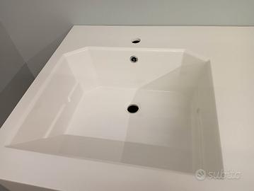 causa svendita, svendo mobile bagno lavanderia in foto, 131x67, color grigio chiaro laccato opaco, con vano porta lavatrice a dx e 2 ante a sx, unico top in mineralmarmo con lavatoio integrato a sx. Nuovo. Ditta Italiana, Idealbagni Serie Laundry, prezzo di listino dimostrabile 1520euro