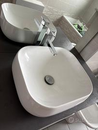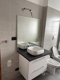 Vendo set mobile bagno composto da: specchio, lavandino, miscelatore, top, mobiletto con due cassettoni e miscelatore bidet in accoppiata. Sanitari non in vendita. Smontaggio e trasporto a carico dell’acquirente. Acquistati nel 2020, come nuovi