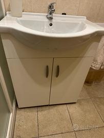 Mobile bagno bianco con 2 ante ,lavabo e rubinetto.musure 85x67x46