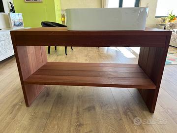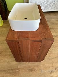 Mobile bagno massello legno IROKO + lavabo. Il lavabo e’ nuovo. Sempre nell’imballo originale. Mai montato. Larghezza mobile 118cm x 54. Altezza 70. Lavabo 61x39, alto 15 cm. 400 euro tutto.