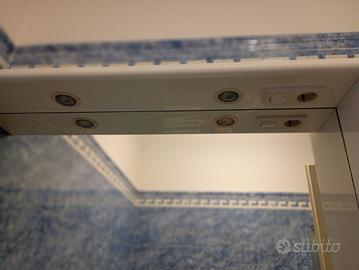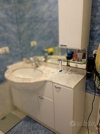 mobile bagno bianco larghezza 113, profondità 33, compreso lavabo 57, altezza 83. con piedini . Mobiletto affianco allo specchio larghezza 25, altezza 80, profondità 22. Ripiano in marmo