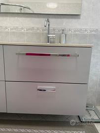 mobile bagno modello Kubiko, colore grigio, con specchio, lavandini e top in marmo