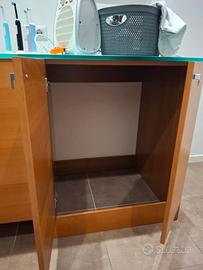 Dimensioni 145 x 65 profondità colore legno doppia anta per nascondere la lavatrice.piani cristallo verde acqua.