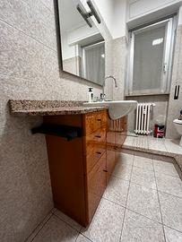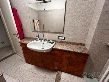 Ciao per cambio arredo vendo mobile bagno marca Mia Bagno in radica con venature evidenti, Top in marmo rosa/granito rosa spesso e in ottime condizioni, Lavabo integrato (non incassato) di tipo classico, Ampia struttura con molti vani.