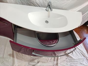 Vendo stupendo mobile per bagno in perfette condizioni, lavello in onice, anti macchie ed anti graffi. Composto da 2 colonne ed un mobile completo di 2 grandi cassetti e due antine laterali. Completo di staffe per installazione a parete per ogni componente. Misure mobile, 157 cm larghezza 50 cm profondità massima 52 cm altezza. Misure colonna 1:150 cm altezza 35cm larghezza, 35cm profondità. Misure colonna 2:150 cm altezza 35 cm larghezza, 22 cm profondità. Prezzo trattabile.