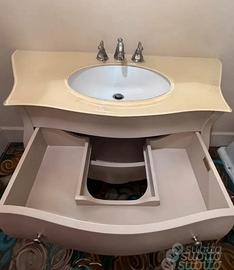 Vendo prestigioso mobile da bagno artigianale firmato Mobili Di Castello, marchio d'eccellenza del Made in Italy (Città di Castello). Il mobile si distingue per il design raffinato in stile Barocco Moderno/Bombato, perfetto per ambienti eleganti o per dare un tocco di classe a un bagno contemporaneo. Caratteristiche principali: • Struttura: Realizzata interamente in legno sagomato con finitura laccata color crema/tortora chiaro. • Top: Piano in cristallo sagomato a forte spessore, finitura satinata/laccata coordinata. • Lavabo: Lavandino sottopiano in ceramica bianca di alta qualità. • Cassetti: Due ampi cassettoni frontali con chiusura sagomata che segue le linee del mobile (il primo cassetto ha lo scasso per il sifone). • Dettagli: Pomelli cromati originali e piedini a sciabola eleganti e stabili. • Dimensioni: Larghezza 121 cm, Profondità 57 cm, Altezza 82 cm Stato dell'oggetto: Il mobile è strutturalmente perfetto e i cassetti scorrono correttamente. Il piano in cristallo presenta alcuni segni di usura nella laccatura interna (come visibile in foto), dettaglio di cui si è tenuto conto nel prezzo di vendita. NB: il cristallo e’ intatto, e’ solo un difetto dell’incollaggio sottostante. Incluso nel prezzo: Mobile, top in cristallo, lavabo e rubinetteria [se decidi di includere i rubinetti]. Ritiro: A carico dell'acquirente. Il mobile è di pregio e pesante (legno massello), si consiglia trasporto adeguato.