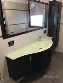 1) Mobile Bagno sospeso curvo della Marca 'B2 Bagno - Modello 600' in rovere t. wengé con piano in cristallo colore trasparente con ampia vasca integrata e centrale (dimensione ovale) compreso di miscelatore.