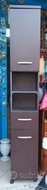 mobile da bagno molto versatile di colore wenghe misura altezza 185cm larghezza 30cm profondità 30cm e dotato di ruote facile da spostare e pulire.