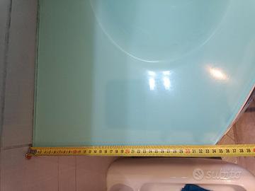 mobile bagno sospeso completo di lavabo in cristallo verde acqua . misure in foto. il mobile presenta segni di usura facilmente rimediabili. subito disponibile solo su ritiro a casa .non spedisco