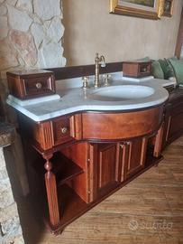 Mobile bagno in stile old english in legno massello e rifiniture bronzate. Piano in marmo. Inclusa rubinetteria Frattini bronzo.