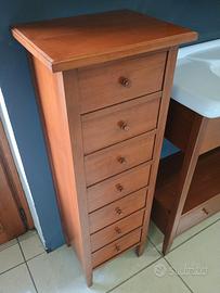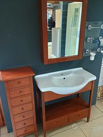 vendo mobile da bagno in puro legno di ciliegio,la base è da 80 con un cassetto ed una zona a vista completa di lavabo in ceramica da 85 cm.specchio contenitore con lampada,completo di colonnina con cassetti ed accessori bagno appesi alla destra dello specchio.