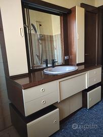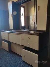 Mobile per bagno di ampia capienza con due ante laterali e uno specchio grande nella parte alta; in basso, invece, si trovano ben 8 postazioni di diversa grandezza, dove riporre gli oggetti. La rubinetteria non è compresa. Misure: - Lunghezza 160 cm; - Profondità 63 cm; - Altezza 191 cm; - Altezza ripiano 81 cm; - Altezza ante 110 cm. Possibilità di trasporto a casa nel raggio di 300 km con spese a carico dell'acquirente. Se interessati chiamare il numero 3491215023 (chiamate o via whatup) e chiedere di Sandra.