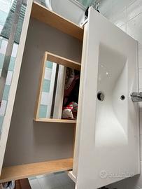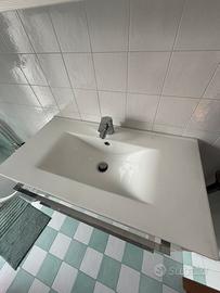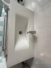 Vendo per cambio progetto bellissimo mobile bagno da 100 cm. La finitura lucida della vasca in marmo resina dona una luminosità incredibile all'ambiente. I due cassettoni sono profondi e robusti, perfetti per asciugamani e prodotti di bellezza. L'altezza di 52 cm lo rende ideale per un'installazione sospesa, facilitando anche la pulizia del pavimento.