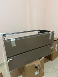Vendo mobile bagno + pensile abbinato senza lavabo, acquistato da Leroy Merlin , mai assemblato, sia per errore della scelta del colore e sia perché appena arrivato, una volta aperto il mobile mi sono accorto della presenza di alcune imperfezioni nella verniciatura come si può vedere dalle foto, sia nella parte superiore che verrebbe coperta dal lavabo e sia nella parte inferiore. Mentre il pensile è in perfette condizioni.