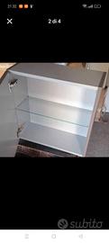 mobile bagno +pensile con mensole in vetro grigio nuovo 120x60x35