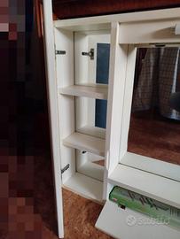 mobiletto pensile con specchio, con anta laterale all Inglesina e cassetto inferiore. Misure: larghezza 90 altezza 72 profondità 13