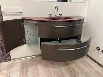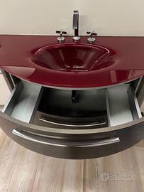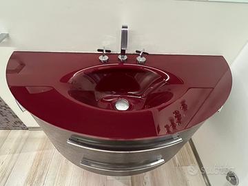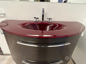 đ Mobile Bagno Design Moderno con Top in Cristallo Rosso - Eccellente Stato! đ´