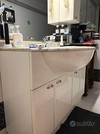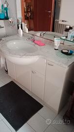 Mobile da bagno bianco con pietra in marmo e specchiera. Misure: 1m e 13cm di lunghezza, 57cm di larghezza e 1m e 80cm di altezza